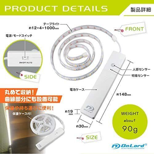 【送料無料】乾電池式LEDテープライト 電球色 屋内用 人感センサー 明暗センサー OL-601L オンロード(OnLord)