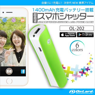 【期間限定セール対象品】超音波 スマホ リモコン シャッター リモート モバイルバッテリー搭載 1400mAh (OL-202L) ライムオンロード | OnSQUARE(公式|オンスクエア販売サイト)