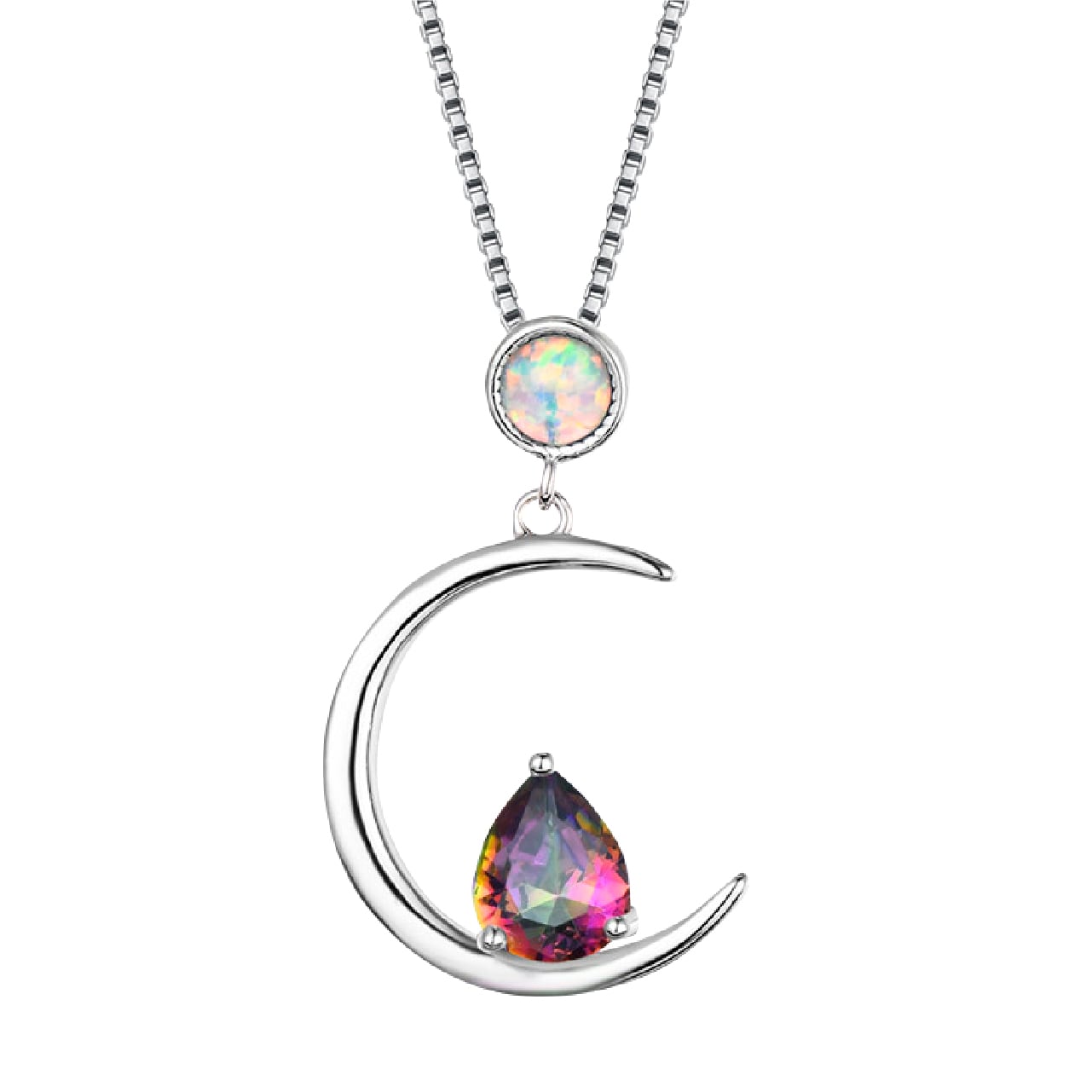 オパールとムーンの中にウォータードロップ型のジルコンを組み合わせたネックレスは、 上品で洗練された印象を与えます。