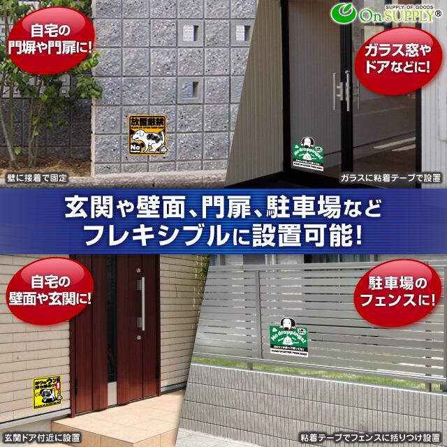 ●玄関ドア・窓・門扉・駐車場フェンス等の目立つ所に貼るだけで防犯効果アップ!
