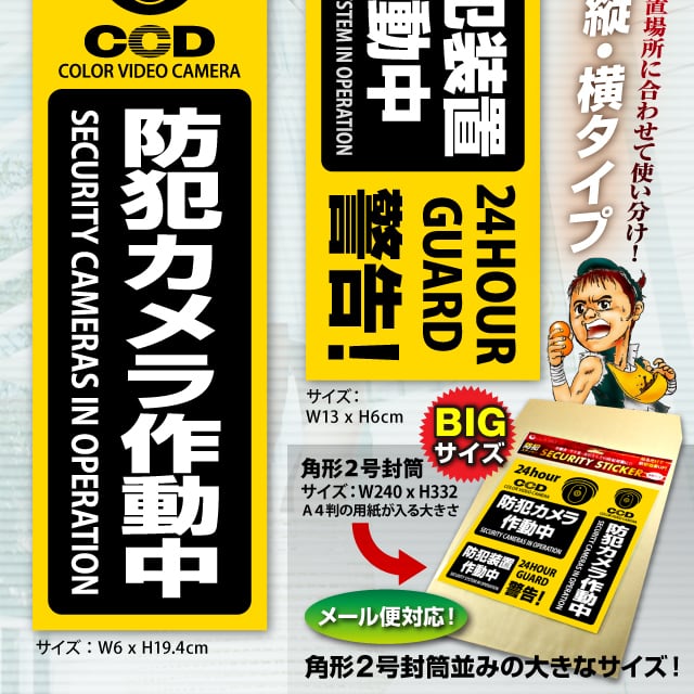 玄関ドア・窓・車両等の目立つ所に貼るだけで防犯効果アップ!