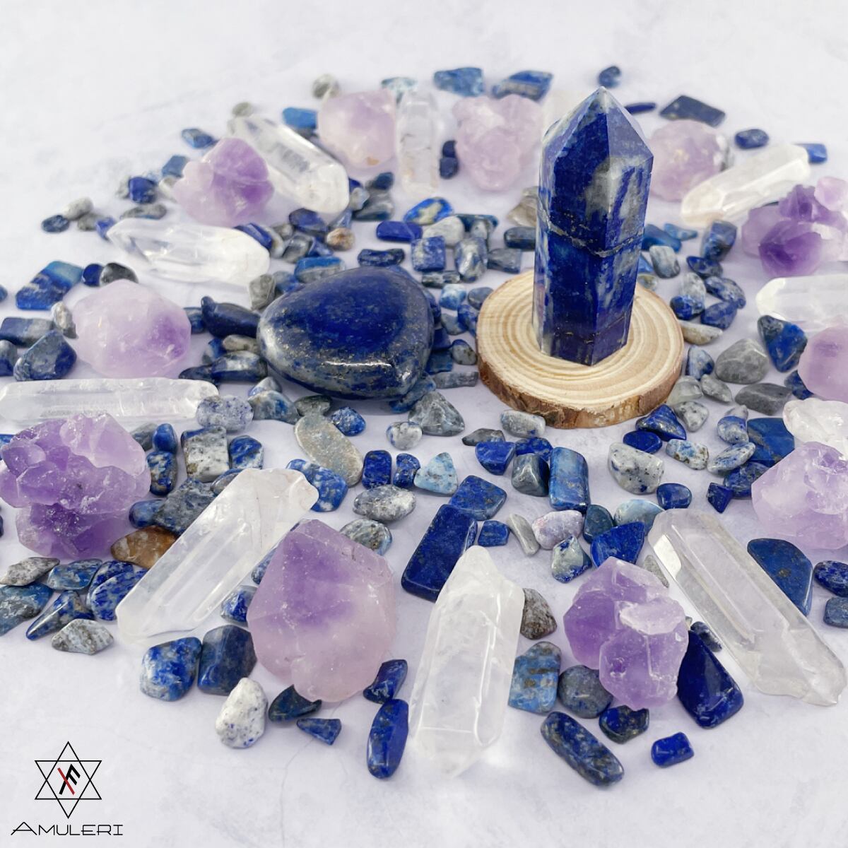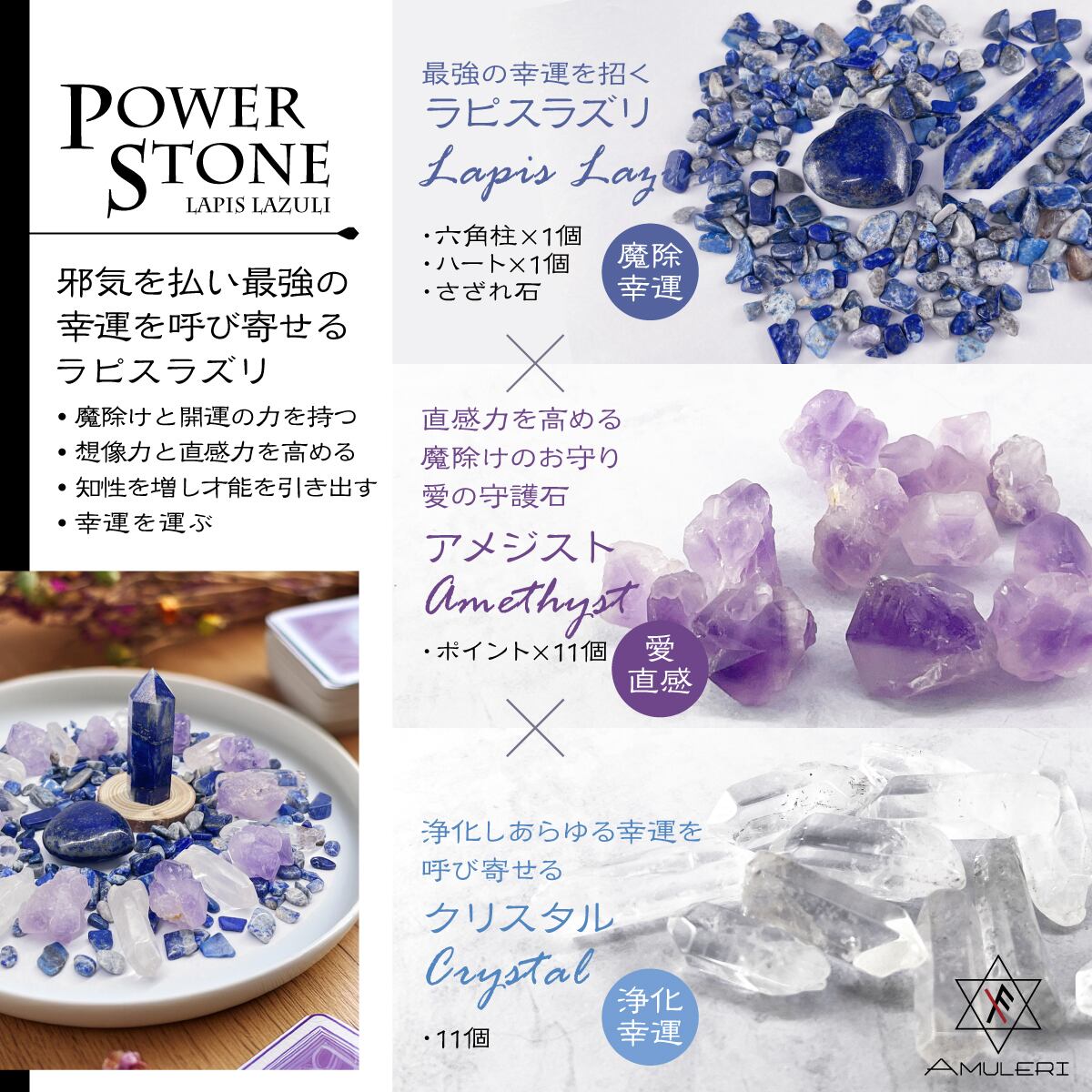 ★「ラピスラズリ・アメジスト・クリスタル」の豪華な組み合わせのパワーストーンセット。願い事を浮かべながら石を放射状に並べてインスピレーションを深め、自分だけの特別なパワースポットを作ります。